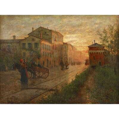 ITALIAN SCHOOL (19TH - 20TH CENTURY) VILLAGE SCENE WITH FIGURES AND CART