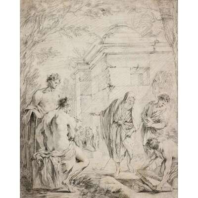 ATTRIBUTED TO LAURENT DE (LAHYRE) LAHIRE (FRENCH 1606-1656) UNEARTHING THE STONE TABLET