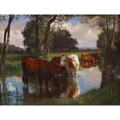 AUGUSTE (FRANÇOIS AUGUSTE) BONHEUR (FRENCH 1824-1884) CATTLE WATERING IN A STREAM