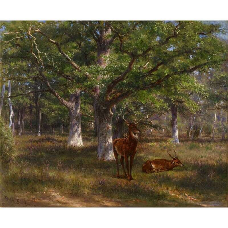 ROSA BONHEUR (FRENCH 1822-1899) STAGS IN A WOOD