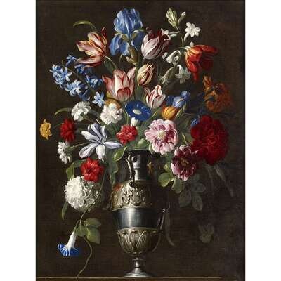 FOLLOWER OF GIOVANNI STANCHI (ITALIAN 1608-1673) TULIPS, A PEONY, A CARNATION, AND OTHER FLOWERS IN A GILT BRONZE MOUNTED URN