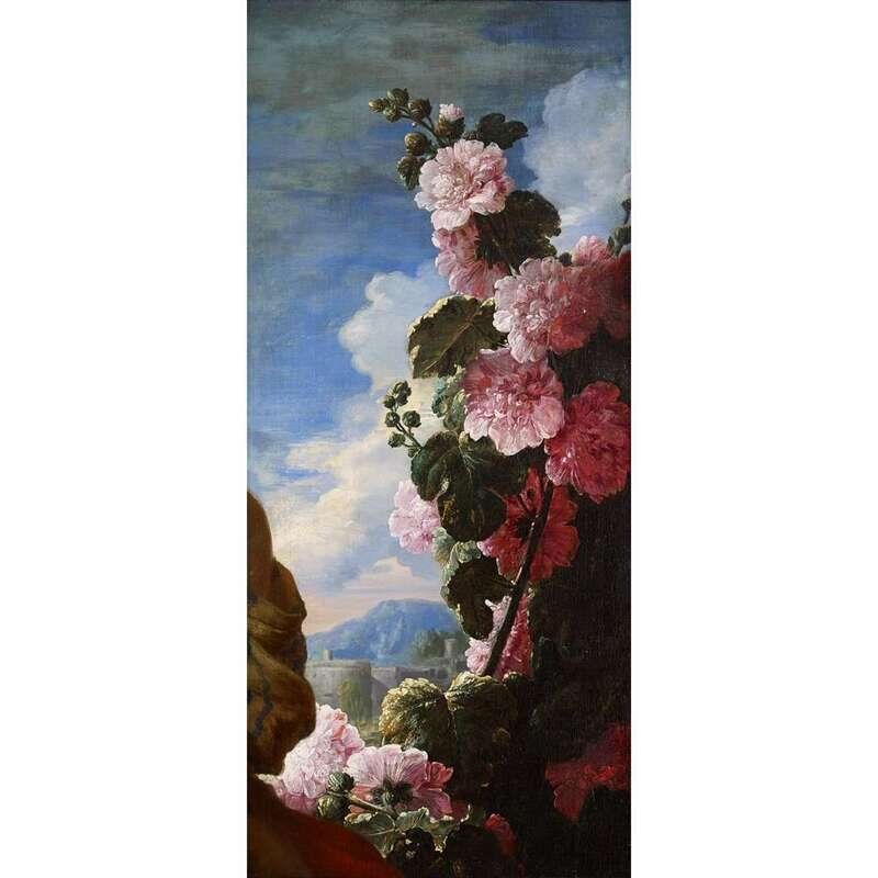 MANNER OF MATTHIAS WITHOOS (DUTCH 1627-1703) OUTDOOR LANDSCAPE WITH CHRYSANTHEMUMS, CASTLE IN DISTANCE