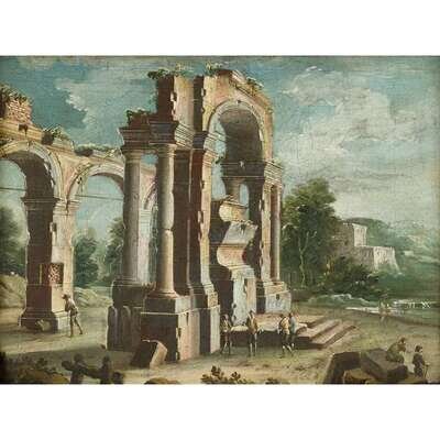 MANNER OF GIOVANNI PAOLO PANINI (ITALIAN 1691-1765) AN ARCHITECTURAL CAPRICCIO WITH FIGURES