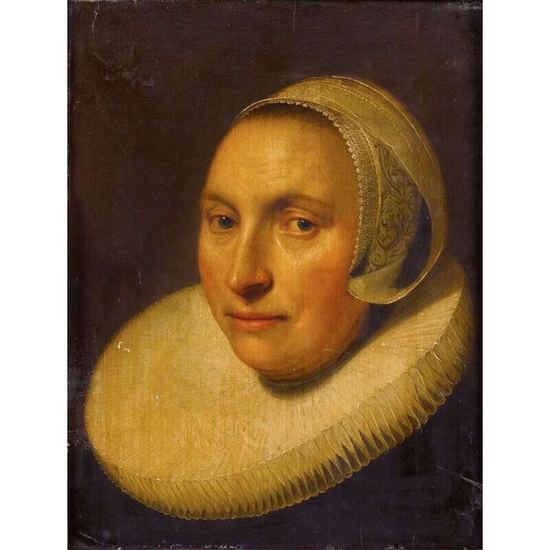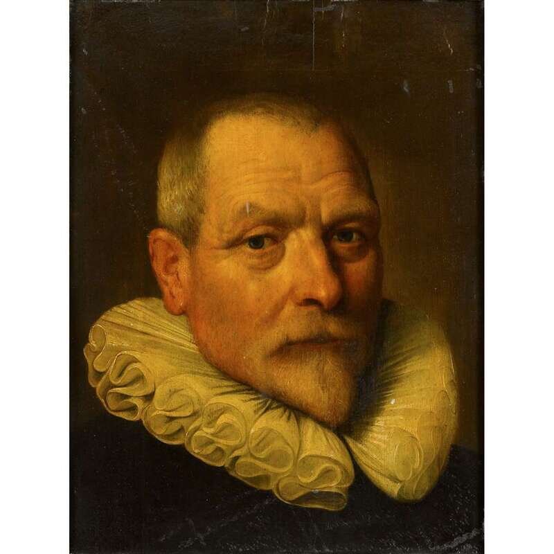 ATTRIBUTED TO JAN DAEMEN COOL (DUTCH 1589-1660) PORTRAIT OF A GENTLEMAN, BUST LENGTH, IN A BLACK DOUBLET AND WHITE RUFF COLLAR;PORTRAIT OF A LADY, BUST LENGTH, IN A BLACK DRESS AND RUFFLED LACE HEADDRESS