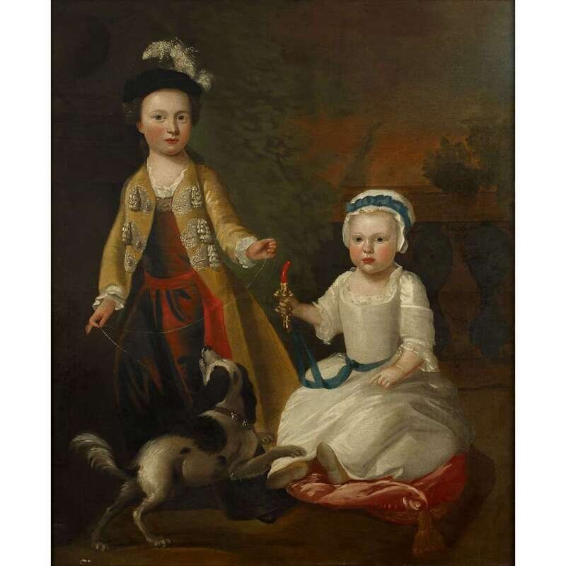 CIRCLE OF GEORGE KNAPTON (BRITISH 1698-1778) ELEGANT CHILDREN WITH THEIR DOG IN A LANDSCAPE