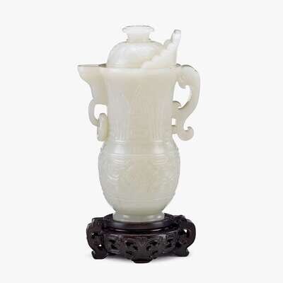 A Chinese white jade 'sengmaohu' covered vase with chilong handle 19th century