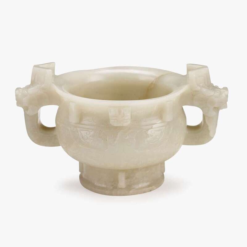 A Chinese white jade censer with twin chilong handles qing dynasty