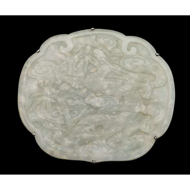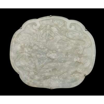 A Chinese white jade round belt plaque carved to show dragon qing dynasty