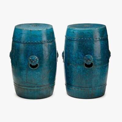 A rare and early pair of Chinese turquoise glazed porcelain garden stools yuan dynasty