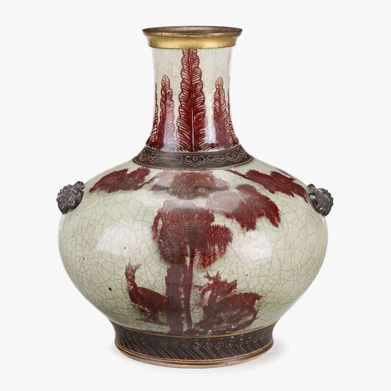A Chinese Ge-type porcelain compressed globular vase with red underglaze 18th century
