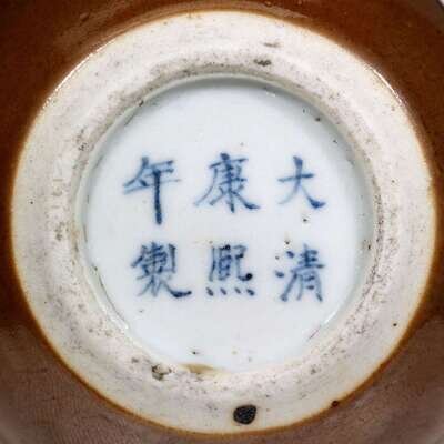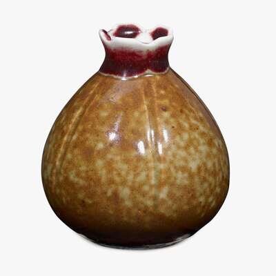 A small Chinese peachbloom glazed porcelain pomegranate 'Zun' vase six character kangxi mark and of the period