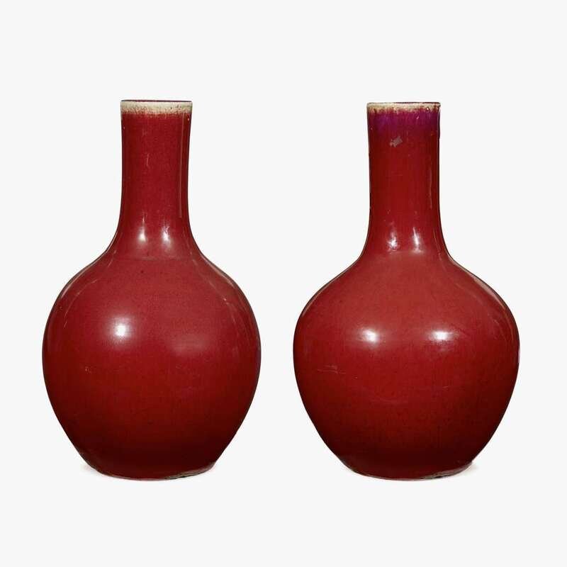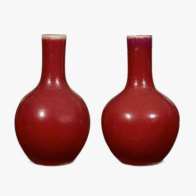 A near pair of Chinese oxblood glazed porcelain bottle vases 18th century