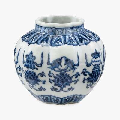 A Chinese blue and white porcelain 'bajixiang' lobed jar possibly 18th century