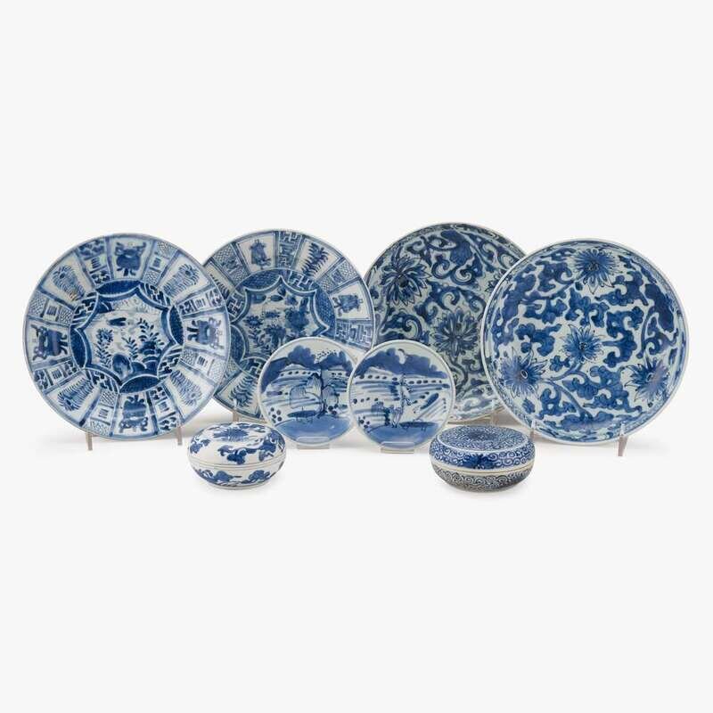 A group of eight Chinese blue and white shipwreck export porcelain wares kangxi period