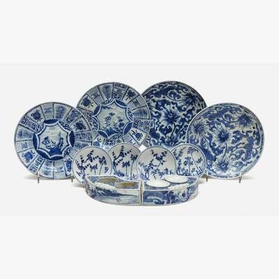 A group of ten Chinese blue and white shipwreck export porcelain wares kangxi period