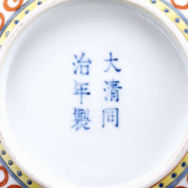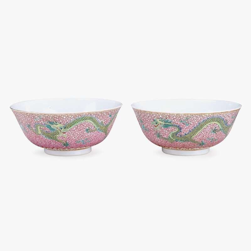 A pair of Chinese famille rose enameled porcelain 'dragon' bowls tongzhi six character mark and of the period