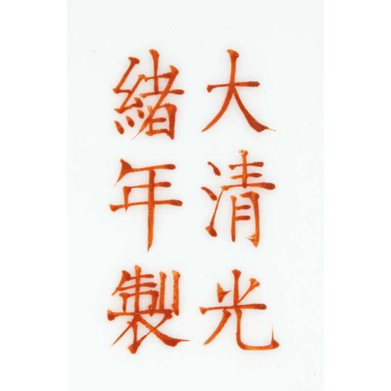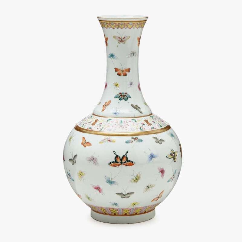 A Chinese famille rose enameled porcelain 'butterfly' bottle vase iron red guangxu six character mark and of the period