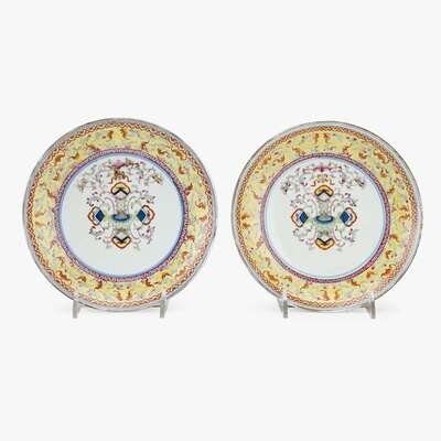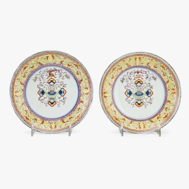 A pair of Chinese famille rose enameled porcelain shallow dishes guangxu six character mark and of the period