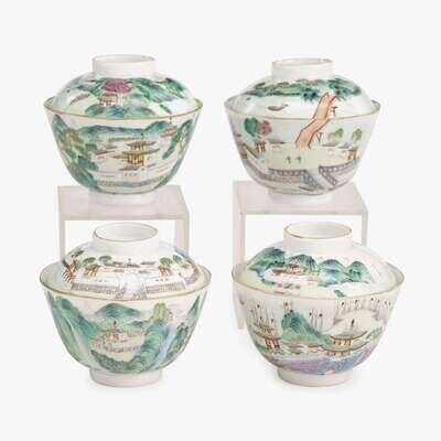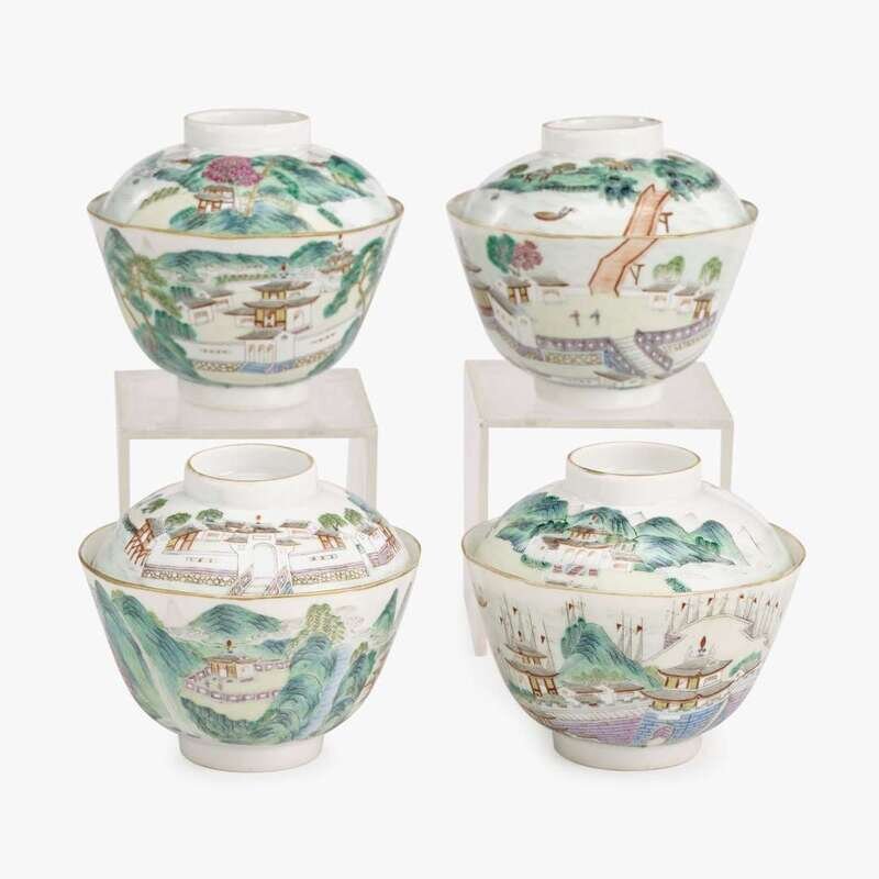 A set of four Chinese famille rose enameled porcelain covered tea bowls daoguang mark, late qing dynasty