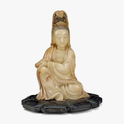 A fine Chinese soapstone carving of seated Wenshu Guanyin 18th century