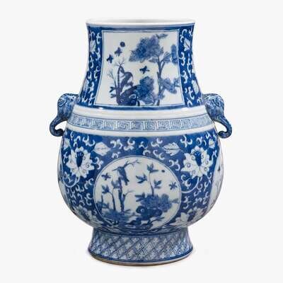 A Chinese blue and white porcelain 'Hu' vase with elephant twin handles 19th century