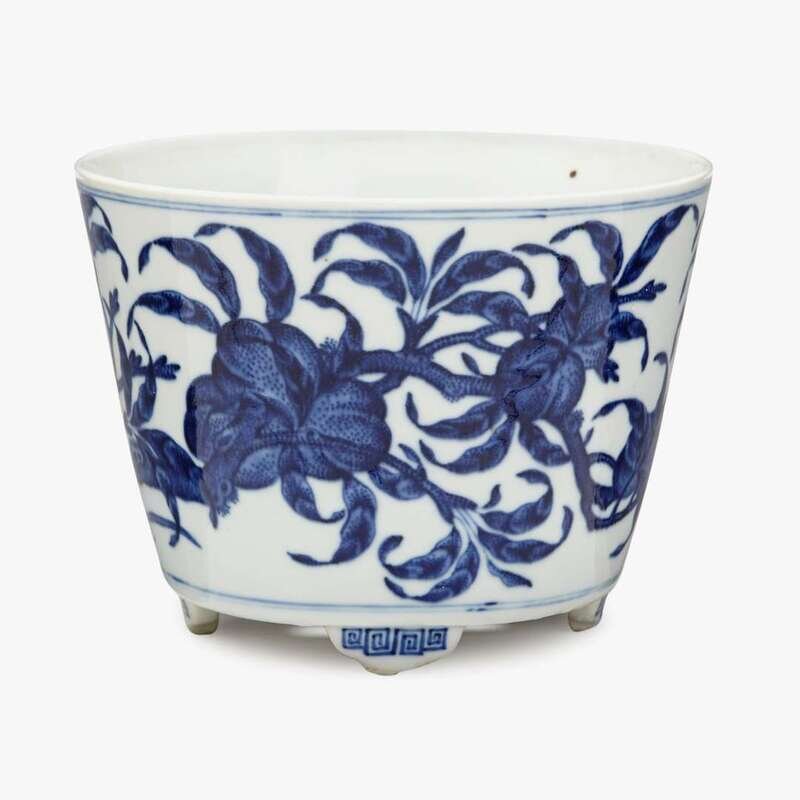 A Chinese blue and white porcelain planter decorated with peaches qianlong six character mark, republic period