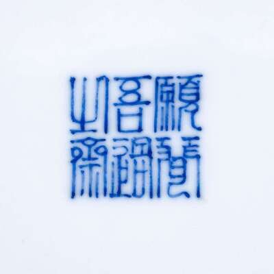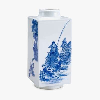 A Chinese blue and white porcelain 'Cong' vase with figural scene 'yuan wen wu guo zhi zhai' mark to base, 20th century
