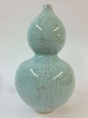 A Chinese celadon crackle glazed porcelain double-gourd vase 20th century