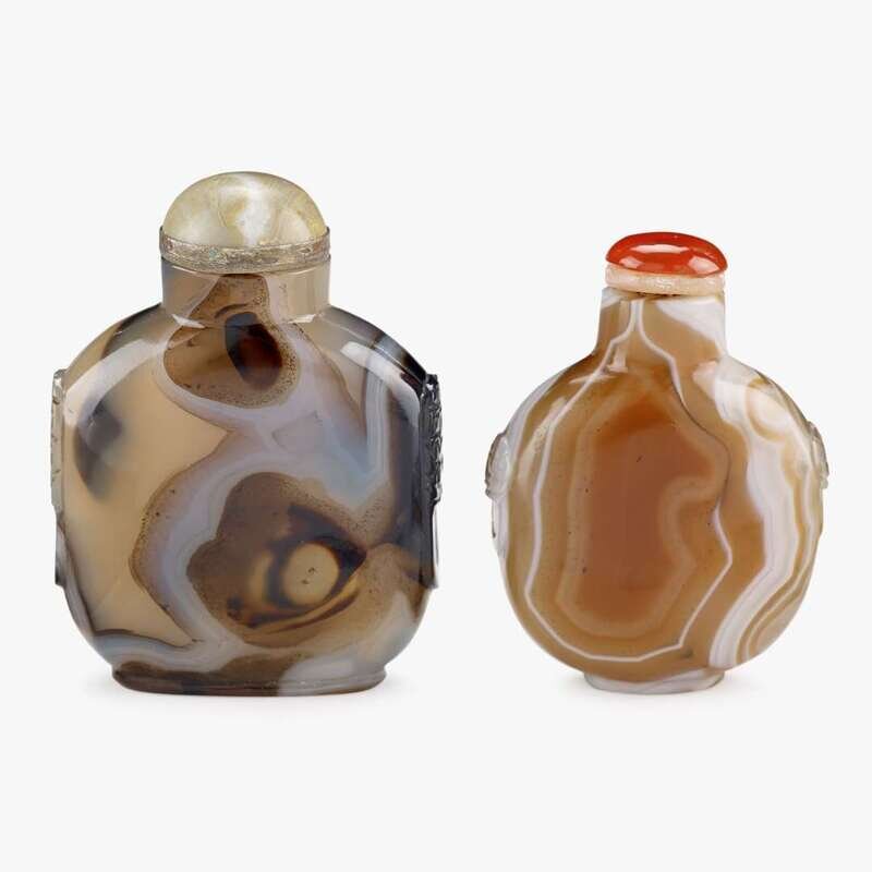 Two Chinese agate flattened ovoid snuff bottles 19th century