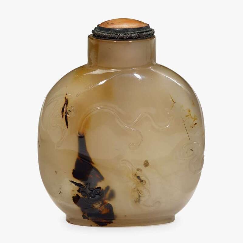 A Chinese silhouette agate 'fu bat' snuff bottle qing dynasty