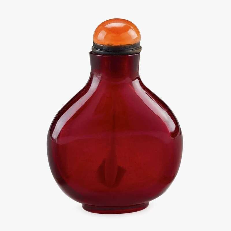 A Chinese unadorned ruby glass round snuff bottle qing dynasty