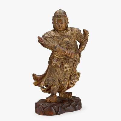 A Chinese gilt-lacquered wood standing figure of guardian bodhisattva Weituo ming dynasty