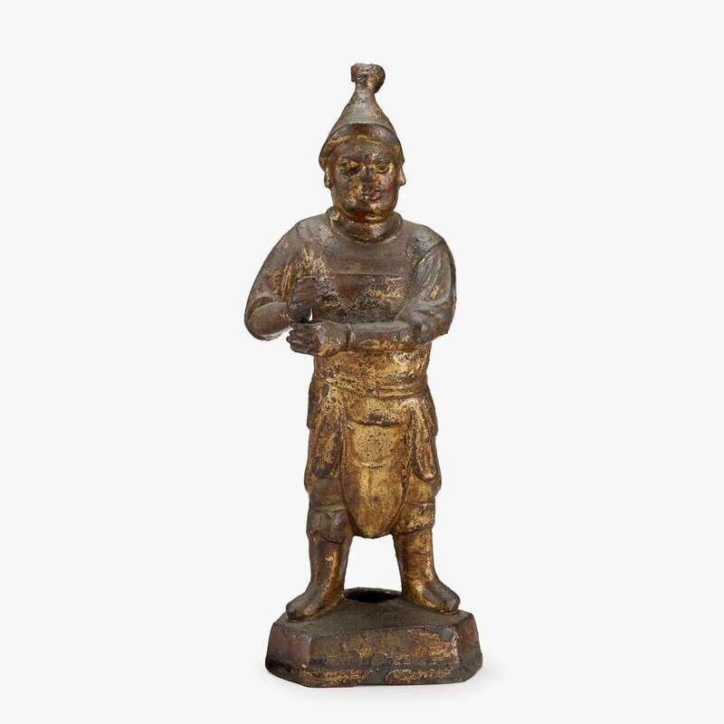 together with a gilt bronze standing attendant figure.