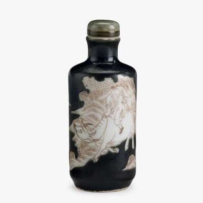 A Chinese black ground enameled porcelain snuff bottle 19th century