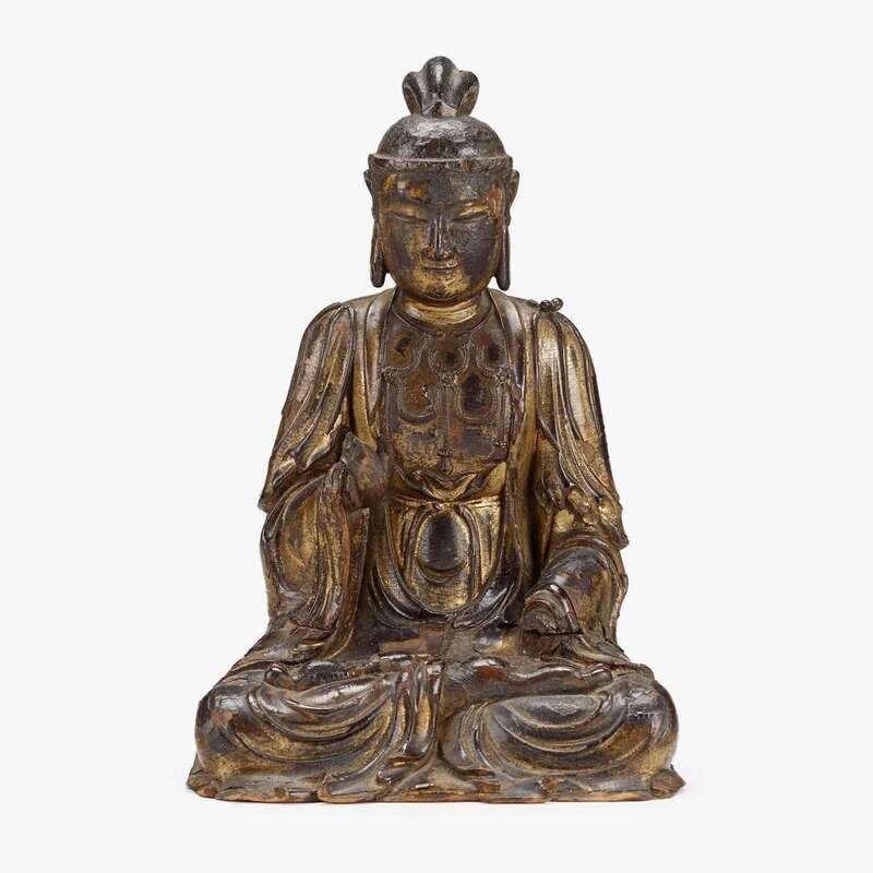 A Chinese gilt-lacquered wood figure of seated Guanyin 17th/18th century