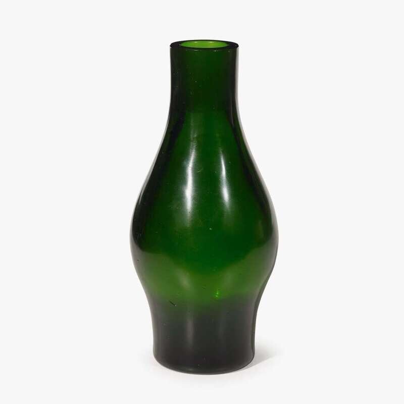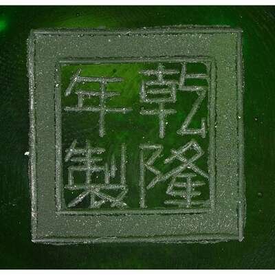 A Chinese green glass spindle-form vase qianlong four-character wheel-cut mark within a square and of the period