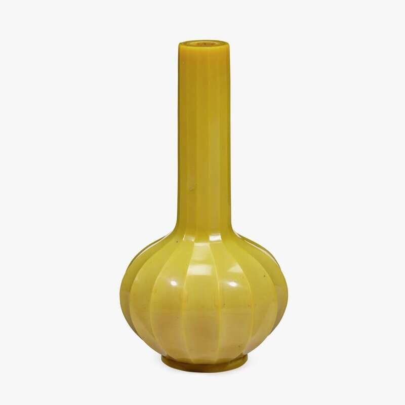 A Chinese yellow glass fluted bottle vase 18th century