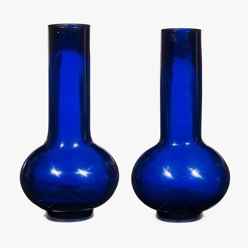 A pair of Chinese large cobalt blue glass bottle vases 18th century