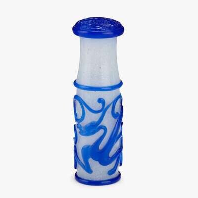 A rare Chinese blue overlay on white glass plume holder late 18th/ early 19th century
