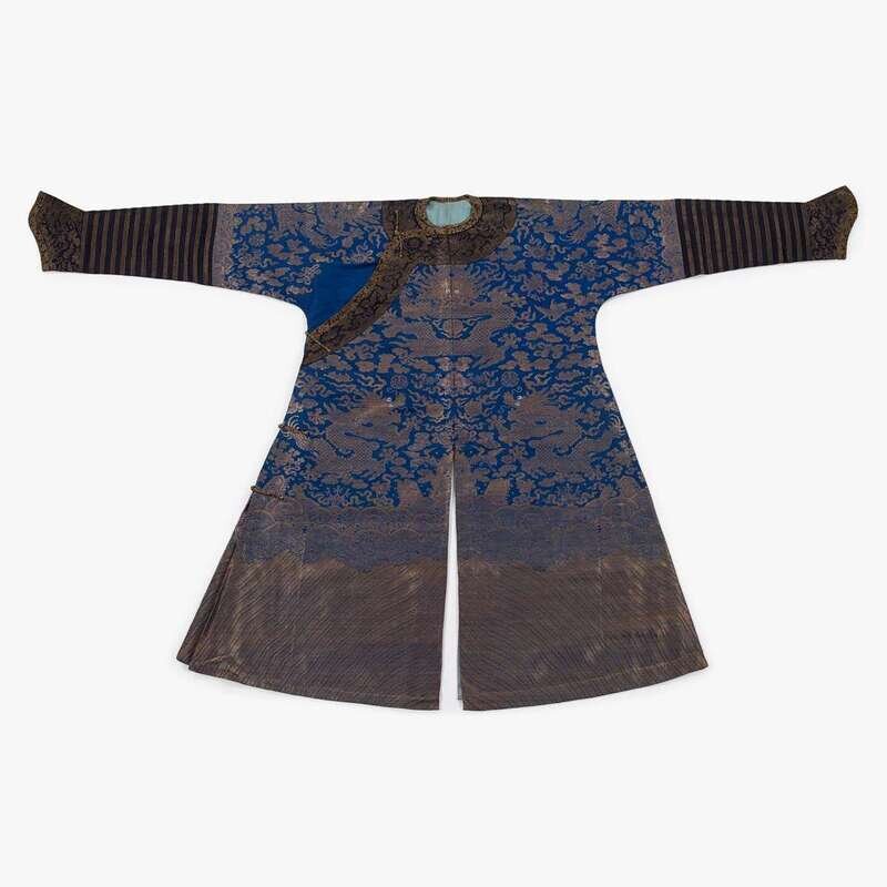 A Chinese dark blue ground summer dragon robe late qing dynasty