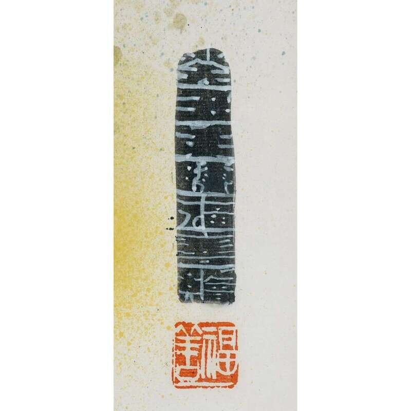 Framed, ink and color on paper, signed "kui chou chen fu shou zeng" with three seals of the artist Sight H: 27 in., 68.6 cm; W: 18 in., 45.7 cm