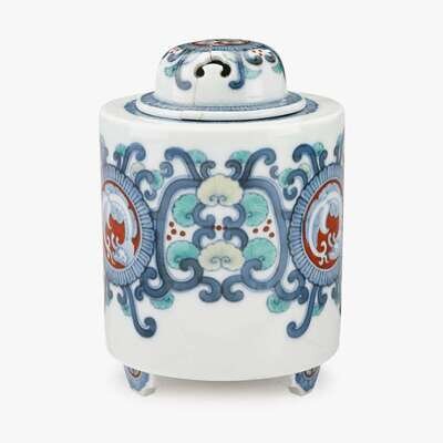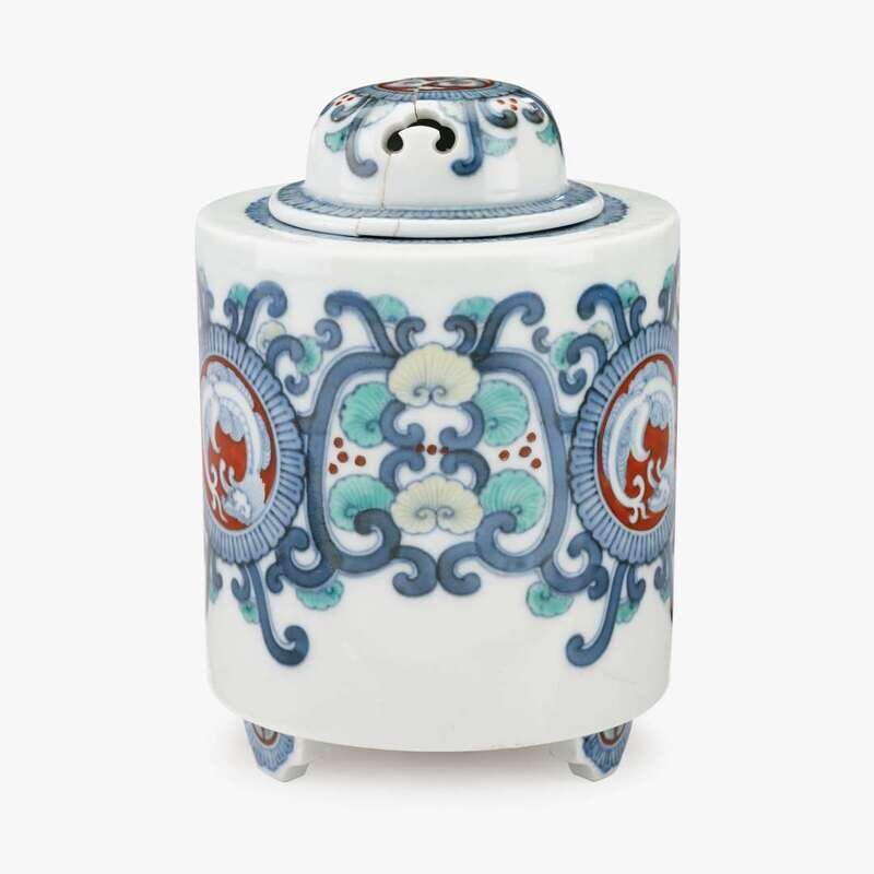 A Japanese imperial hirado porcelain tripod koro with cover koransha mark, edo period