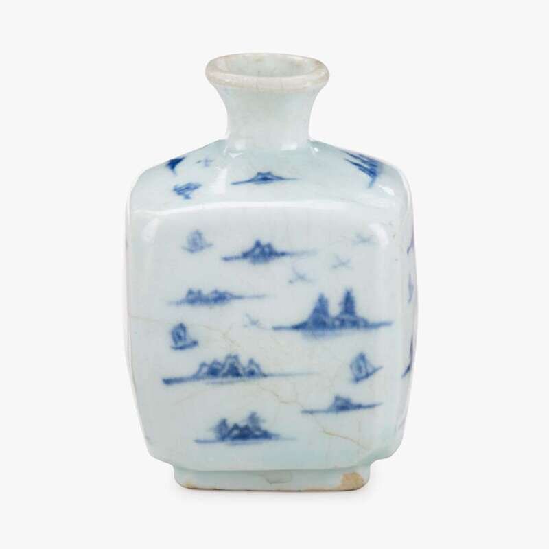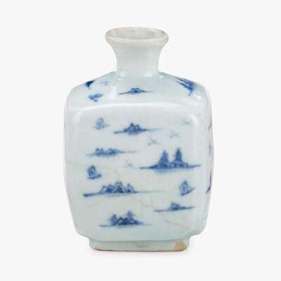 A small Korean blue and white porcelain square vase joseon dynasty