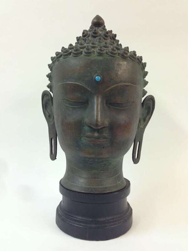 A large Tibetan cast bronze head of Buddha Shakyamuni early 20th century