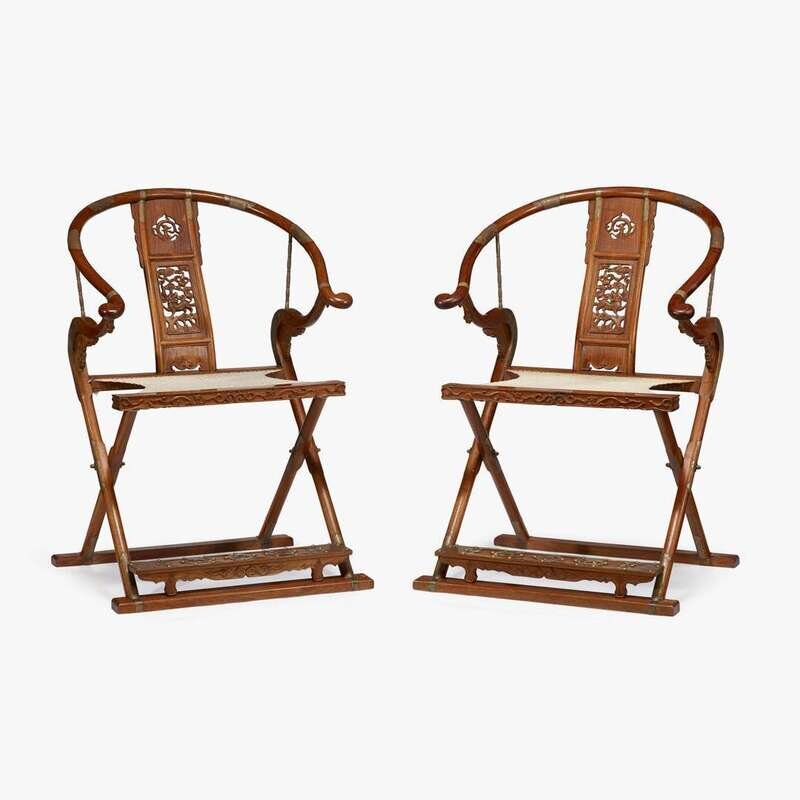 A pair of Chinese huanghuali folding chairs 20th century