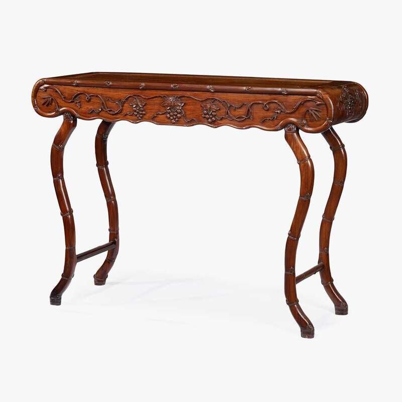 A Chinese hardwood altar table with carved aprons and curved bamboo-stem legs 19th century