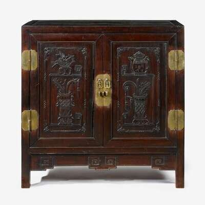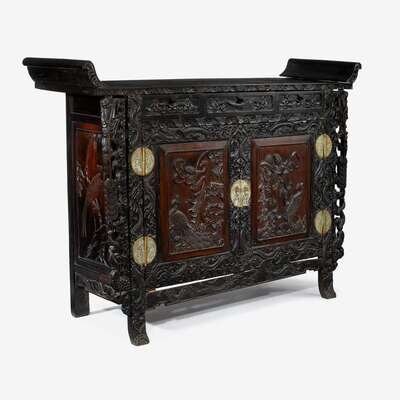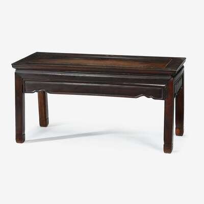 An elaborately carved export-style Chinese hongmu coffer table late qing dynasty