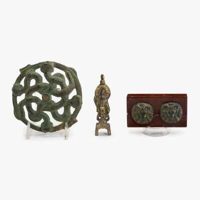 A group of three Chinese bronze castings han dynasty and northern wei dynasty