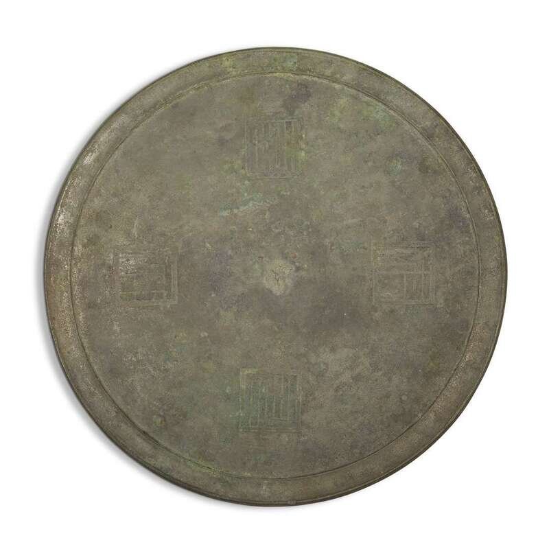 A large Chinese bronze circular mirror qing dynasty