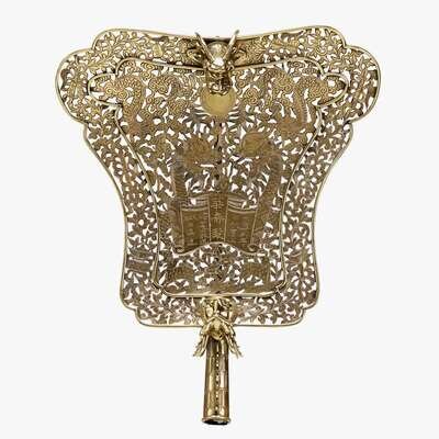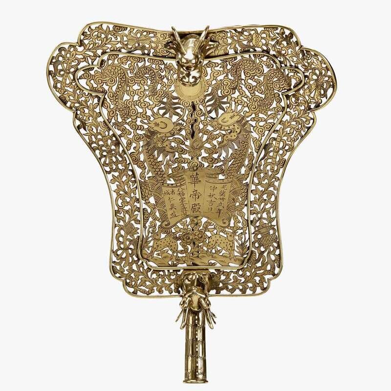 A pair of Chinese bronze reticulated processional screens with dragons guangxu period